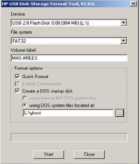 ada beberapa alat yang wajib disiapkan.1.Flashdisk 2.Komputer yang mendukung fitur booting lewat usb 3.File atau software berisi: * Norton Partisi Magic ( untuk membuat partisi lewat dos ) * Norton Ghost ( untuk Backup dan Restore Windows ) 4.Software USB Format Sebelum melakukan proses booting dengan flashdisk,kita harus menjadikan flashdisk kita sebagai media bootingnya.Berikut langkah pembuatannya:Jalankan aplikasi HPUSB Format